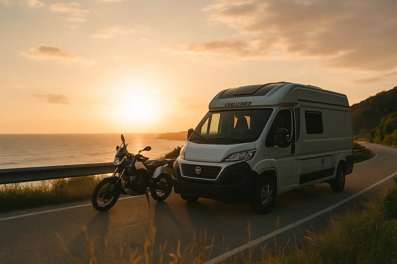Explora nuestra flota de autocaravanas y motos, equipadas para garantizar comodidad y seguridad en cada viaje.